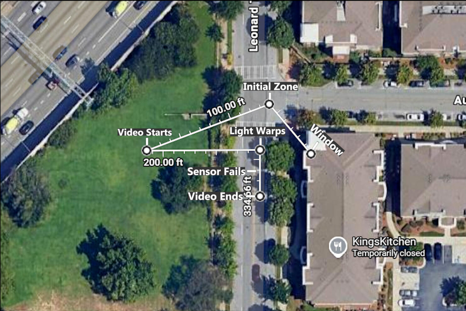 Despite the drone descending in a wavelike motion with alternating peaks and troughs towards the camera for most of the video, its movement and scale in the video never reflect how it traveled in real life. From the start to the end of the video, the drone traveled ~200 feet towards the camera as it drastically descended in altitude. The drone's warping of the surrounding light caused the camera pipeline to incorrectly nullify its movement, as the position of the light the camera captured shifted in congruence with the drone's orientation.One of the first things I noticed after replaying the video for the first time was that the duration of the video was much shorter than I would expect, given that the drone traveled from the middle of the field to directly over the apartment, and factoring in the drone's constant speed throughout practically its entire flight. Based on the drone’s constant speed as it was directly in front of me, I would have assumed that it would take ~10 seconds to fly this distance instead of the ~4 seconds it takes on video. I recall holding my phone up for much longer than the ~4 seconds it took for the drone to perform this movement as well. This is likely a result of the camera pipeline being overloaded, causing it to discard frames before they were encoded. Several seconds of recording time likely never made it into the video. The drone’s movement, approach, and descent being difficult to discern, provide evidence that the warp bubble’s spatial distortion affects apparent distance, depth, and scale, complicating visual tracking, overloading a camera’s ability to accurately determine the drone’s position. This makes this technology perfect for stealthy operation, as air defense sensors fail to accurately capture the object as it flies through the sky due to the drone warping the light around itself. The drone flying closer to the camera is confirmed by both my visual observation of the drone directly overhead and the video's blackout at ~5.5s as the camera enters the drone's immediate field.